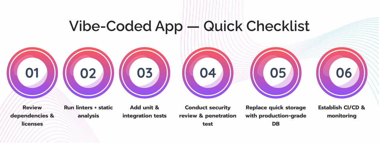 Quality & testing in vibe coded apps is non-negotiable. AI can produce working code, but it can also introduce subtle bugs or insecure patterns.